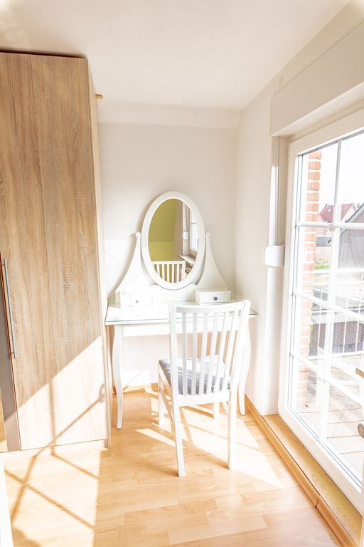 - 1 Schlafzimmer in 1. Etage mit Doppelbett (180 x 200cm) , Nachtschränken, Schminktisch und Balkon